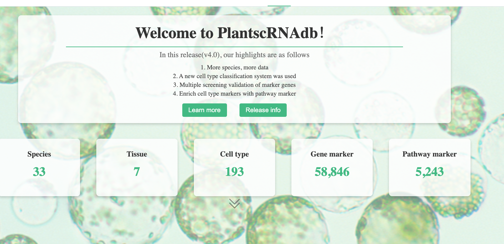 Plant Single Cell Transcriptome Hub (PsctH) was reported in Plant Biotechnology Journal in 2021 as an integrated online resource for plant single-cell transcriptome studies.